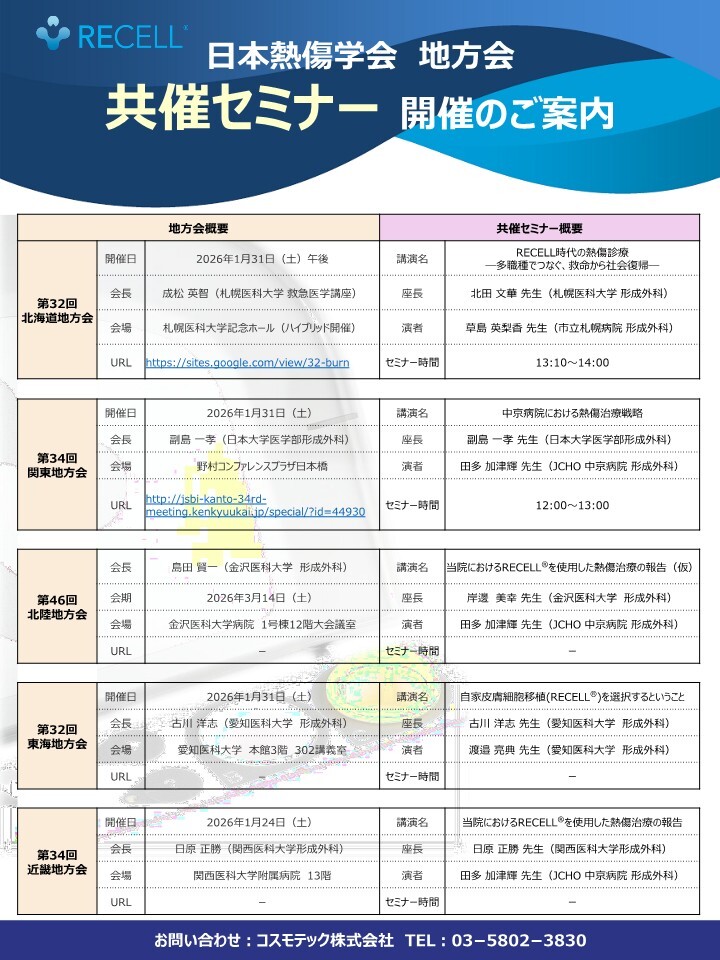 日本熱傷学会 地方会 共催セミナー 開催のご案内